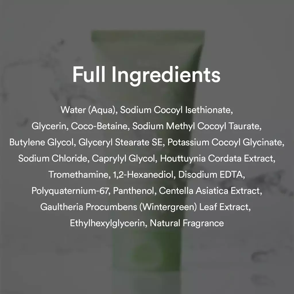 - Extracto de Houttuynia Cordata (Heartleaf): Conocido por sus potentes propiedades calmantes, antiinflamatorias y purificantes.