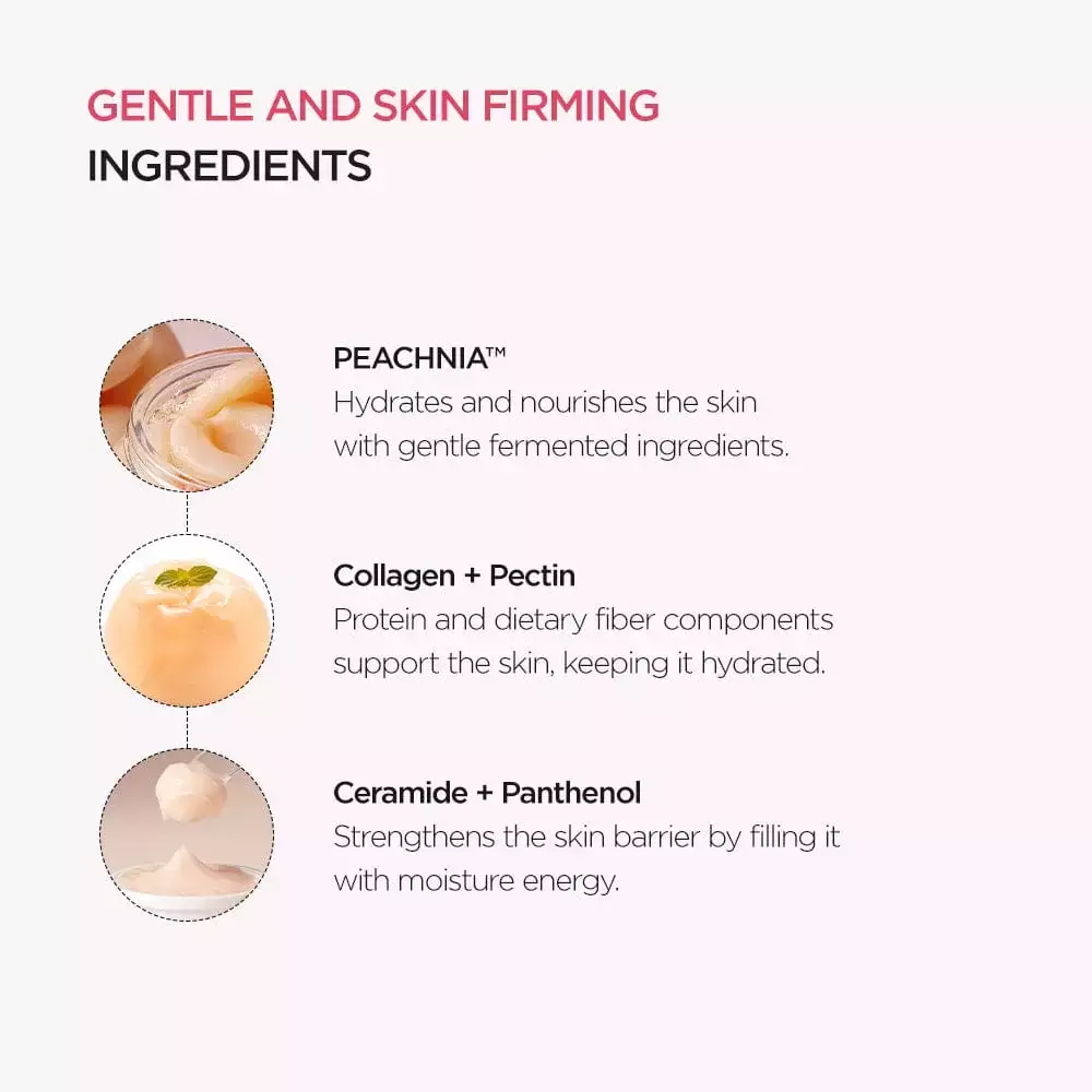 ¿Qué es? Una crema hidratante con una textura única similar a un pudin que se funde en la piel para proporcionar una hidratación duradera y un acabado radiante. Formulada con un 77% de extracto de durazno, esta crema trabaja para revitalizar la piel opaca, mejorar la textura y fortalecer la barrera cutánea. Es el paso final perfecto para sellar la humedad y conseguir esa anhelada "piel de durazno".